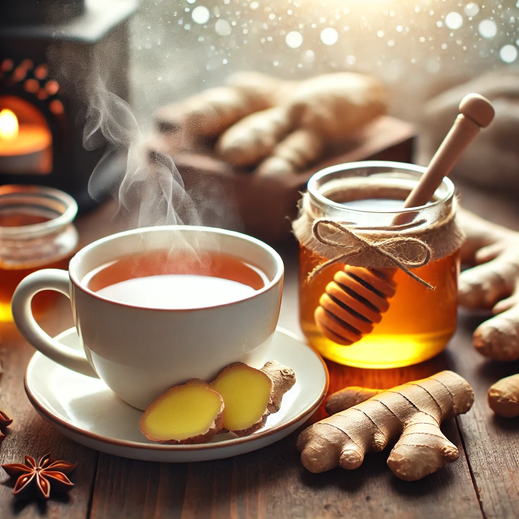 - 재료 준비: 신선한 생강 50g, 물 500ml, 꿀 2큰술.