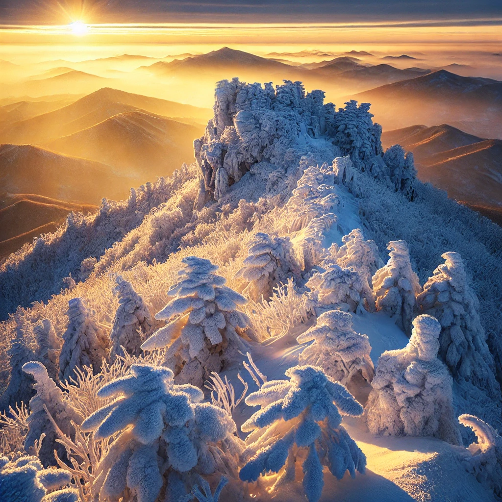 태백산은 겨울철 웅장한 설경을 감상할 수 있는 명소로, 매년 눈꽃축제가 열리는 곳입니다. 하얀 눈으로 덮인 산을 오르며 겨울의 정취를 만끽할 수 있습니다.