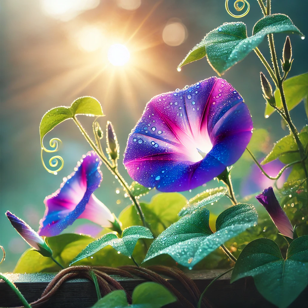 - 보라색 나팔꽃 – 신비로움, 사랑의 기쁨