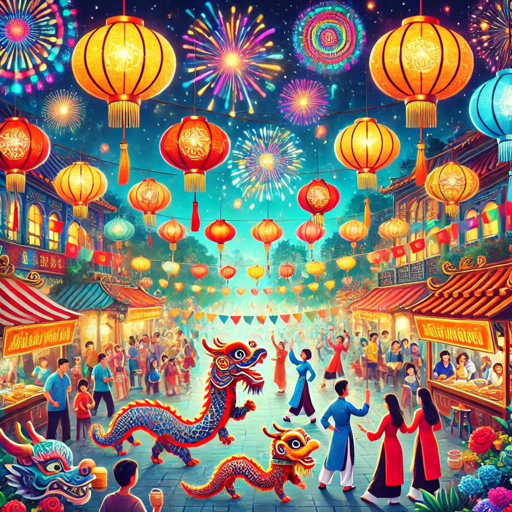 • 의미: 베트남에서 가장 중요한 명절로, 새해의 시작을 축하하는 날입니다. 가족이 함께 모여 조상을 기리며 덕담을 나누고, 다양한 전통 음식을 먹습니다.