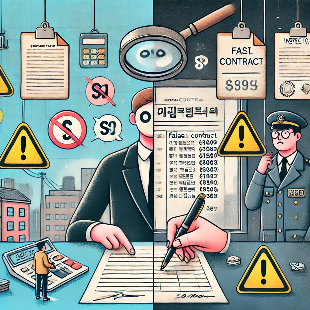 - 허위 계약서 작성은 사문서 위조로 간주되어 형사처벌(징역형, 벌금형) 대상.