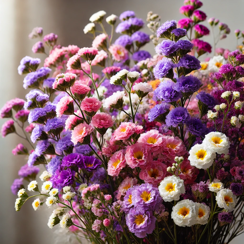 스타티스(Statis)는 주로 아시아 지역에서 자주 자주 만나볼 수 있는 꽃으로, 화려하고 다양한 색상 덕분에 많은 사랑을 받고 있습니다. 스타티스는 주로 여름과 가을에 피며, 다양한 색상으로 꽃을 피우기 때문에 꽃다발이나 장식용으로 자주 사용됩니다. 이 꽃은 그 자체로도 아름다우며, 오래가는 특성 덕분에 건조 꽃으로도 인기가 많습니다.