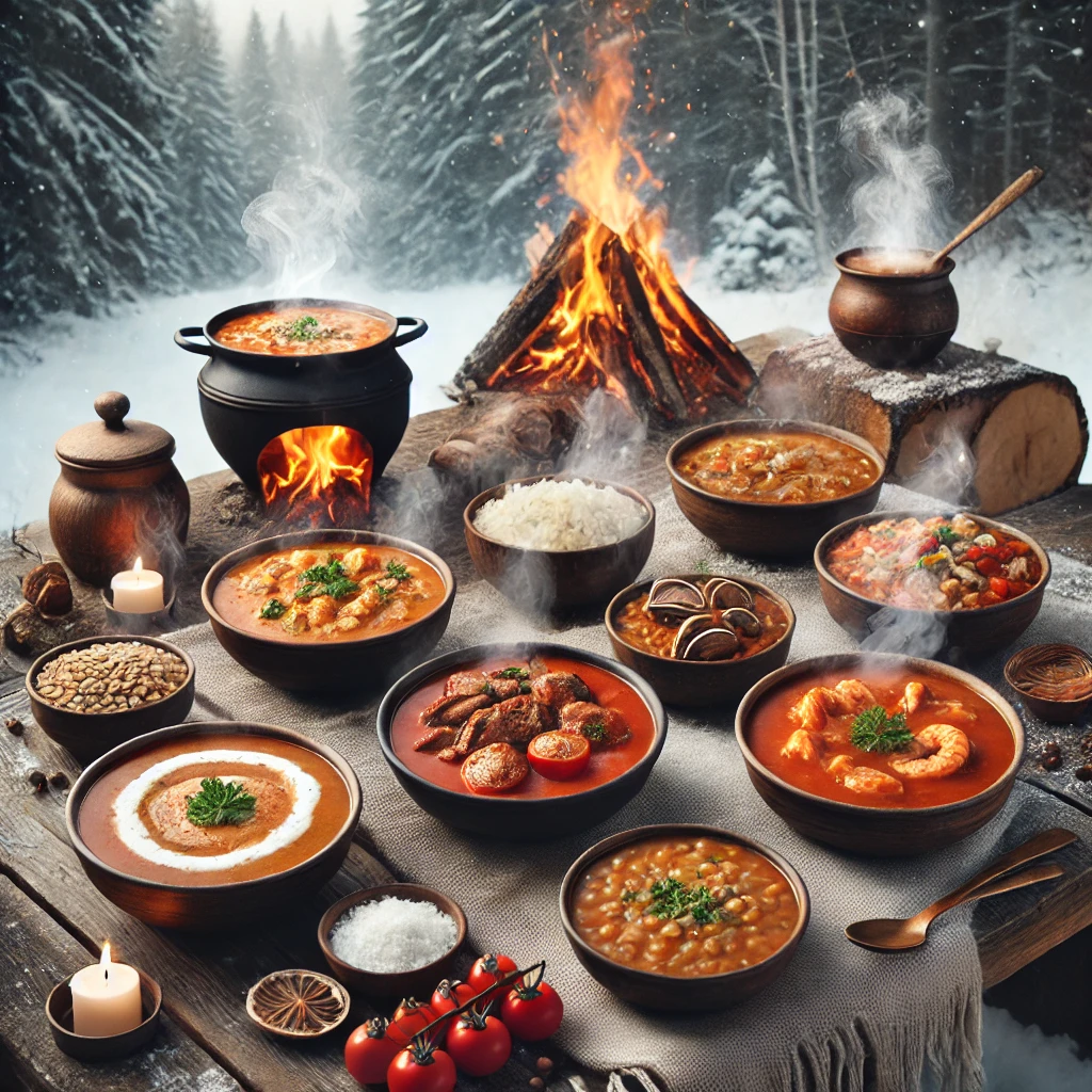 추운 겨울 야외에서도 따뜻하게 즐길 수 있는 스프와 스튜 요리를 소개합니다.