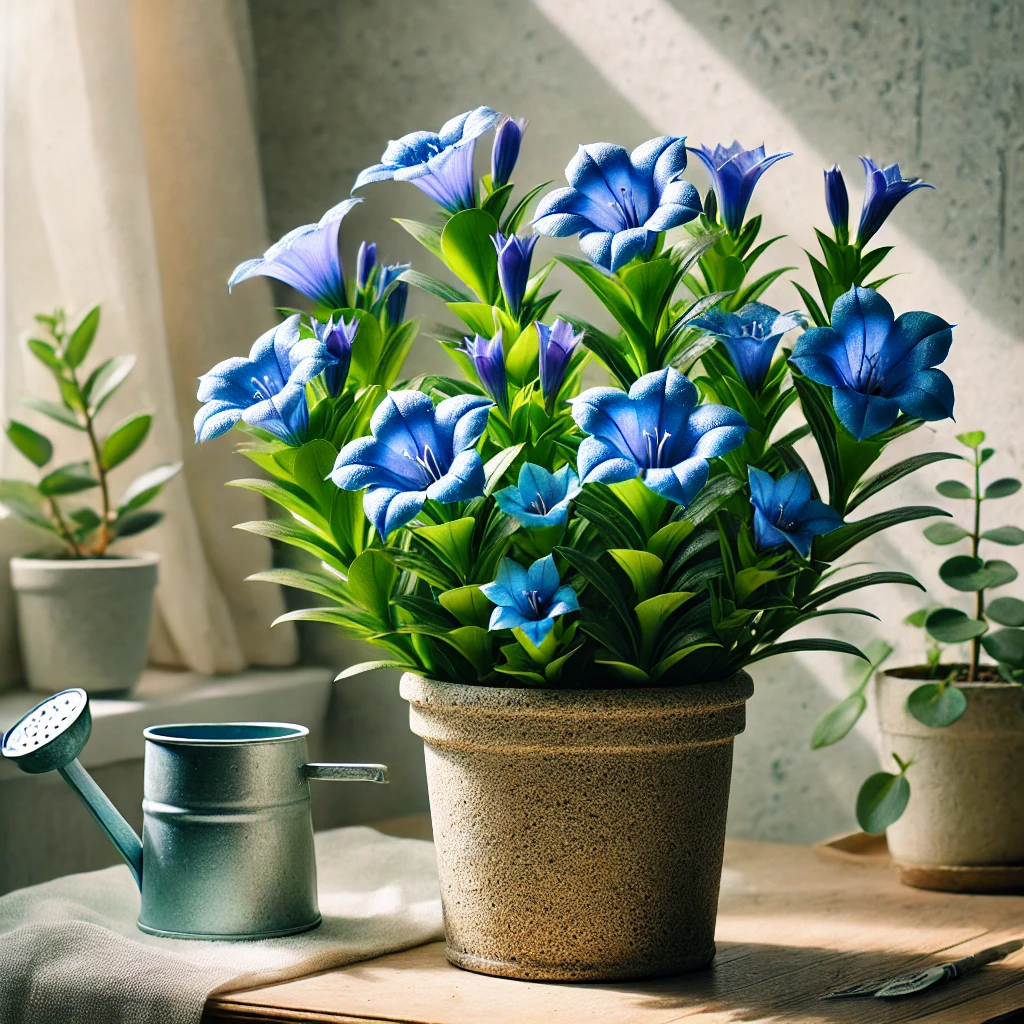 용담화는 관리가 어렵지 않으며, 반그늘에서 적정한 물 주기와 온도 관리를 통해 아름다운 파란 꽃을 오래 감상할 수 있습니다. 💙