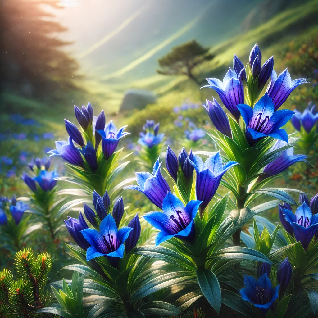 용담화(龍膽花, Gentiana scabra)는 깊고 선명한 푸른색 꽃으로 유명한 약용 식물입니다. 주로 한방에서 사용되며, 강한 쓴맛이 특징입니다. 중국, 한국, 일본 등 아시아에서 오랫동안 건강 증진과 치료 목적으로 사용되었습니다.