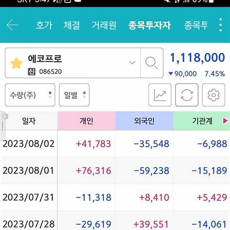 - 코스피 시장: 최근 개인 투자자들은 코스피 시장에서 순매수를 보이고 있습니다. 이는 국내 대형주에 대한 신뢰와 장기 투자 의지를 반영하는 것으로 해석됩니다.