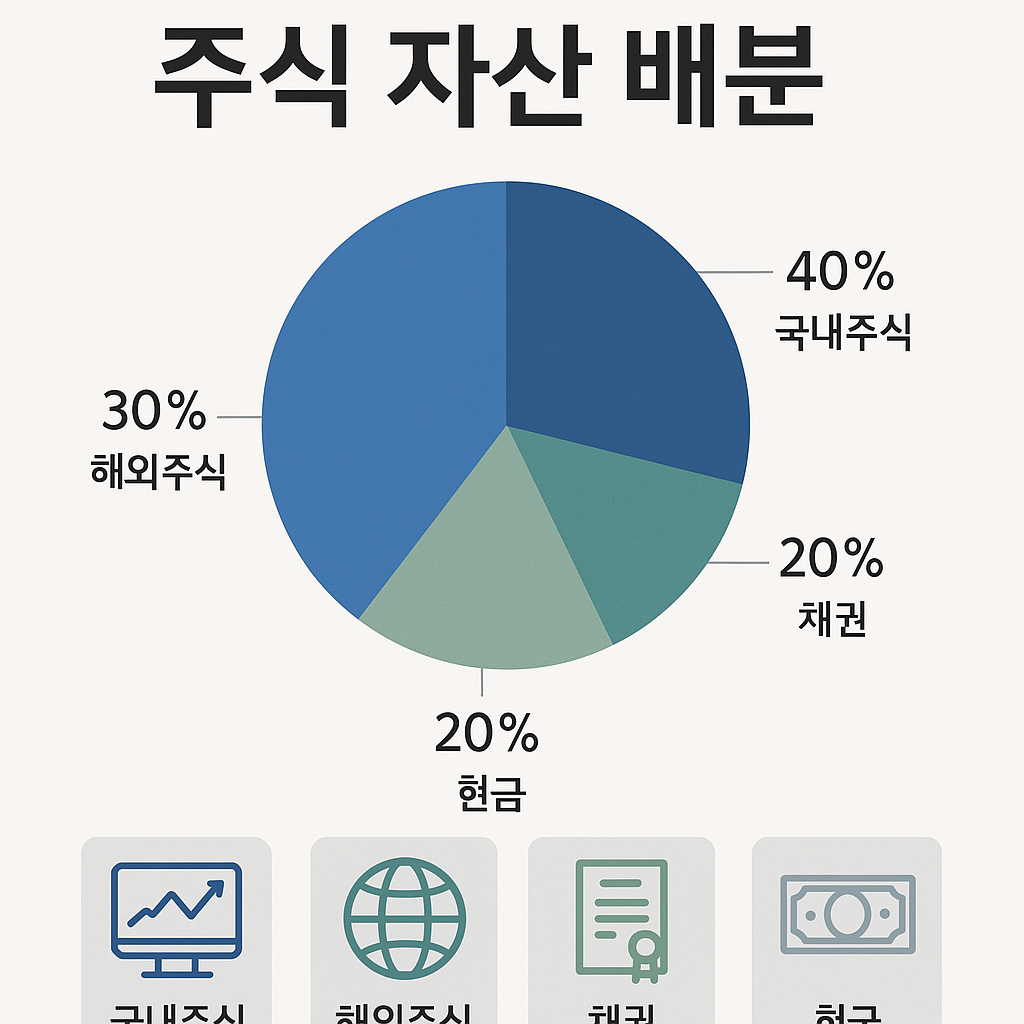 자산 배분(Asset Allocation)은 투자 자금을 여러 자산군(주식, 채권, 현금 등)으로 나눠 투자하는 전략이에요. 단일 종목에 투자하는 것보다 리스크를 낮추고, 시장 변화에 유연하게 대응할 수 있어요.