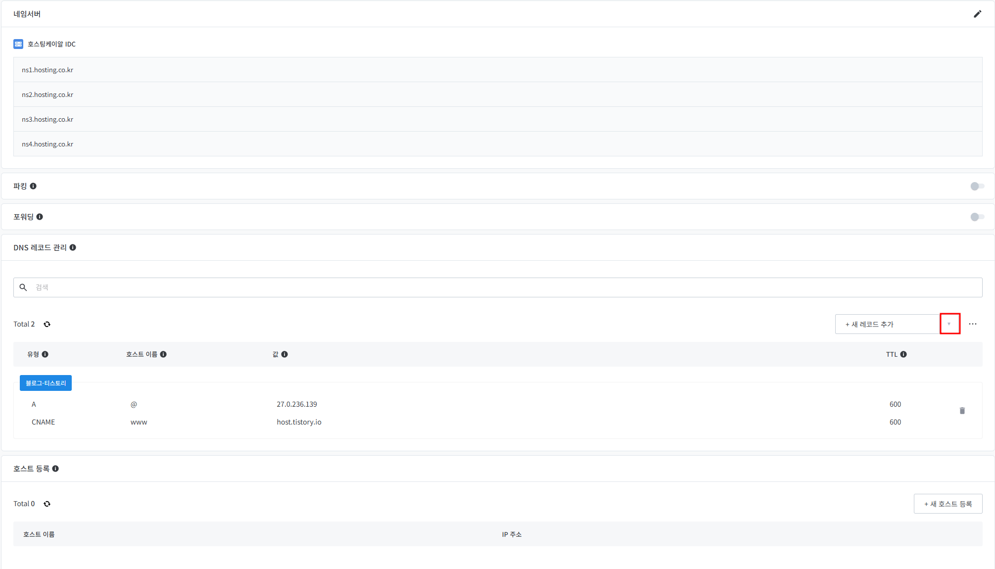 2. 본론: 호스팅케이알 도메인과 티스토리 연결하기