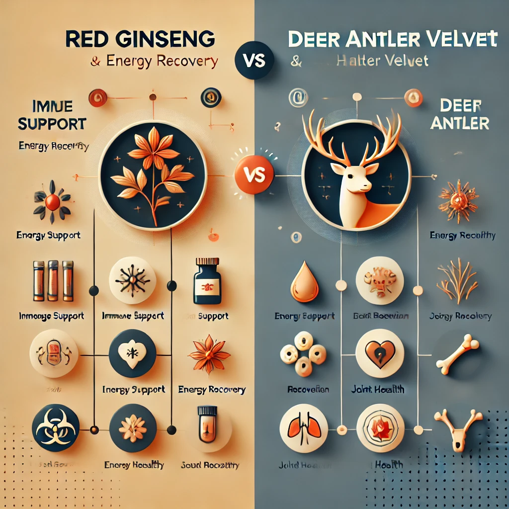 홍삼과 녹용은 모두 신체 건강에 긍정적인 영향을 미치지만, 각기 다른 주효 성분과 효과를 지니고 있습니다.